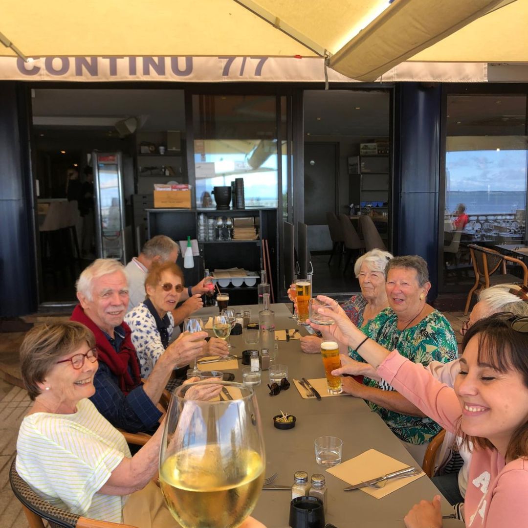 Nos rĂ©sidents seniors ont rĂ©cemment profitĂ© dâune superbe escapade Ă Andernos-les-Bains, charmante station balnĂ©aire situĂ©e sur le bassin dâArcachon. Une journĂ©e placĂ©e sous le signe du bien-ĂȘtre, du partage et de la bonne humeur pour nos aĂźnĂ©s, heureux de sâĂ©vader le temps dâune sortie en bord de mer.