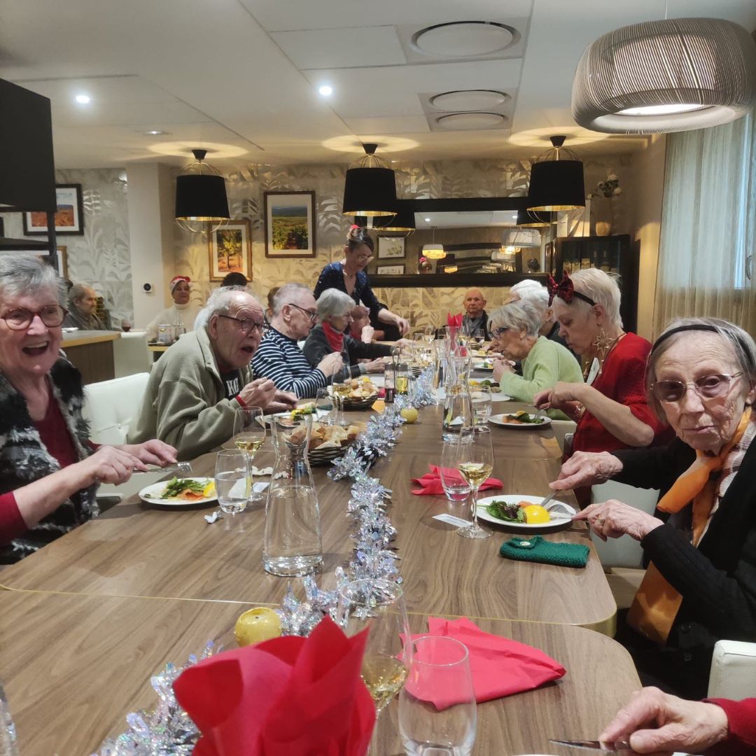 Entre les plats, certains rĂ©sidents ont chantĂ© et applaudi, d’autres ont profitĂ© de la compagnie de leurs voisins pour Ă©changer et se remĂ©morer les NoĂ«ls passĂ©s. Ces instants festifs participent pleinement au bien-ĂȘtre des rĂ©sidents et renforcent le lien social au sein de la rĂ©sidence.