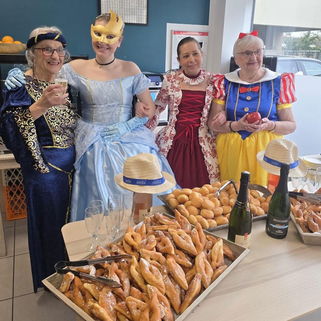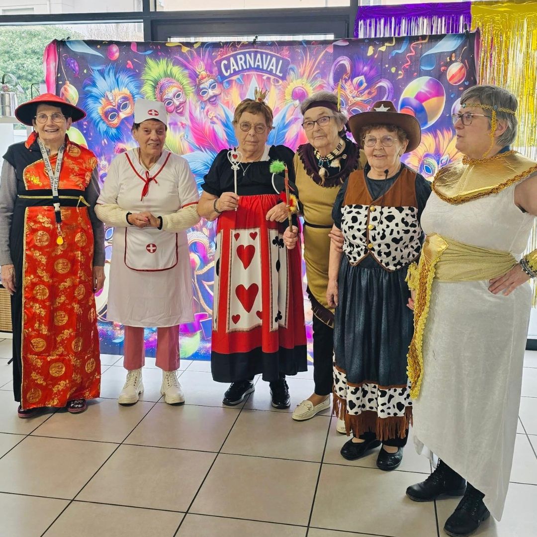 Nos personnes âgées ont joué le jeu avec enthousiasme : chapeaux extravagants, masques vénitiens, accessoires originaux… chacun a apporté sa touche personnelle à cette journée festive.