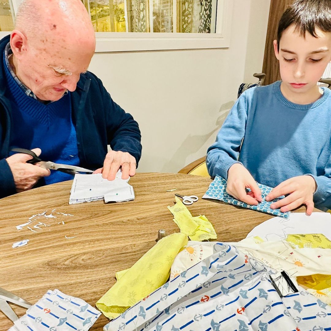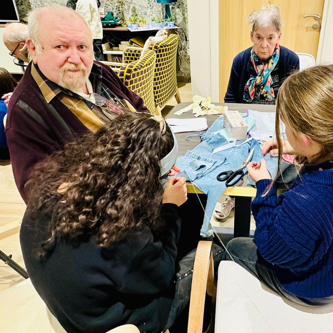 Lors de cet atelier, les seniors et les élèves se sont retrouvés autour de tables colorées, armés de tissus, de fils, de boutons et de beaucoup d’imagination.
